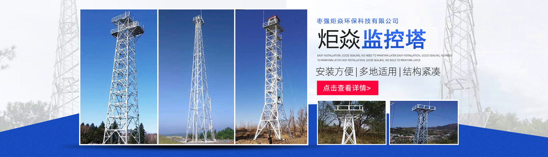 棗強炬焱環保科技有限公司主要產品有:5G基站配套產品、避雷塔、監控塔、監控桿、瞭望塔、微波塔、消防訓練塔、煙筒塔等鐵塔產品,集設計、制造、施工安裝于一體。產品主要銷往部隊、移動、聯通、水利、石油、煤碳、冶金、廣播電視等部門,行銷全國30個省市自治區。